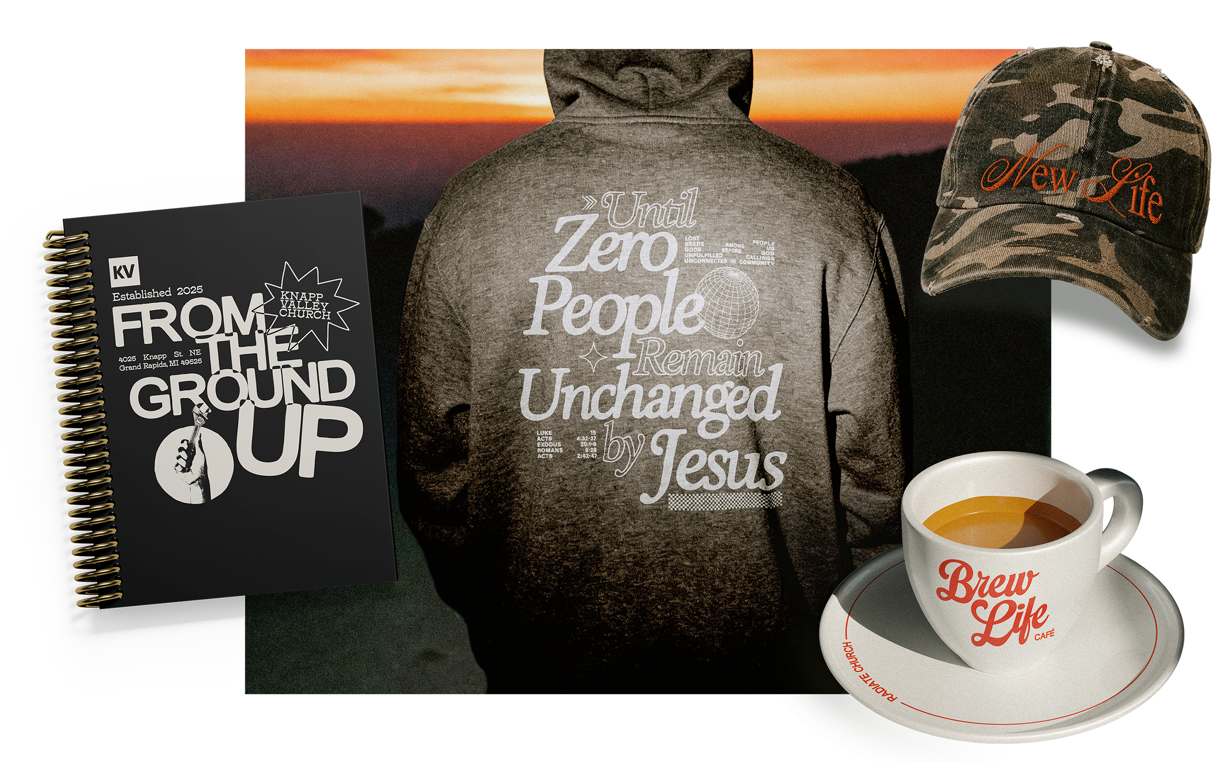 We design merch people actually want to use, not the stuff that ends up in a drawer. Every piece is built to reflect your church’s identity and fit naturally into everyday life. Clean. Bold. Intentional.
